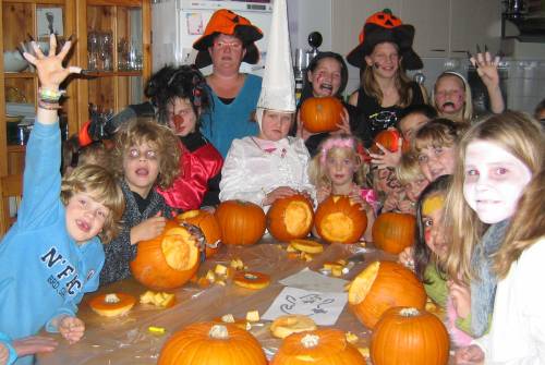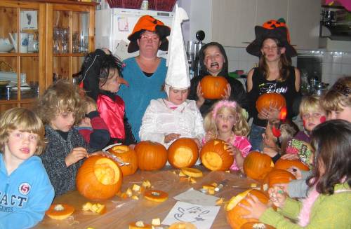 Geplaatst op:29-10-2007 Bijgewerkt op:29-10-2007 10:44 Halloween bij ThereseVrijdag 26 oktober hield Therese, gastouder voor kinderen van 1-12 jaar, een Halloweenfeestje (eigenlijk is het op 31 oktober) Er werden vooraf pompoenen uitgehold, zodat de kinderen alleen de oogjes en neus en mond eruit hoeven te snijden. Ook werden er kinderen geschminkt, het was feest! De kinderen werden na een tochtje door de wijk opgehaald door hun papa's en mama's en oma's en ze mochten hun mooie pompoen meenemen. Het was een leuk halloweenfeestje.