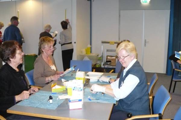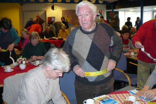 Met veel gelach werd de risicotest ingevuld, waarbij o.a. de buikomvang moest worden gemeten.