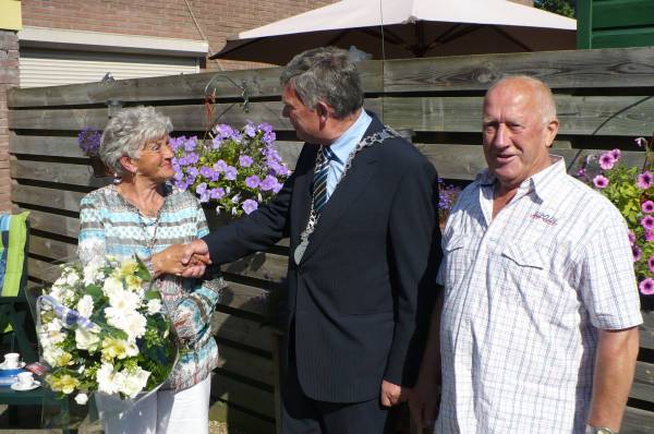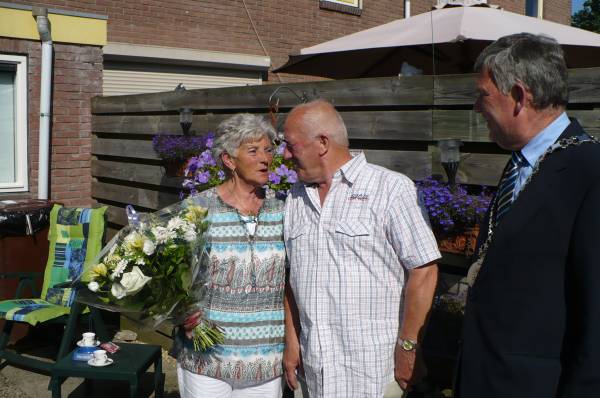 Donderdag 24 juli kwam wethouder Jan Vinkenburg het Gouden echtpaar feliciteren. Riet en Willem Verheul begonnen hun huwelijk in een oud huis aan de Mannenhuisstraat. Dat werd te klein toen de vijfde (van de zes) dochters zich aandiende, waarna ze verhuisden naar de Odilliastraat. Piet was- en is, naast zijn werk bij De Vier Gemeenten, ook een prima huisman. Nog steeds is zijn soep in de familie een culinair hoogstandje!