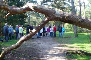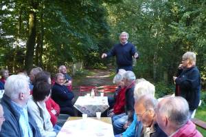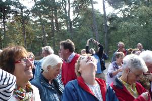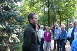 Maandag 15 september verzamelden 56 wandelaars zich bij de Hoflandschool voor de jubileumwandeling met het Knooppunt. Na een korte rit bereikten ze “Het Panhuis” in het Panbos waar koffie en cake op hen wachtte. Boswachter Martijn Berge leidde de groep het bos in, wist boeiend te vertellen, en wees de wandelaars op nesten, uilen, en bosbeheer.