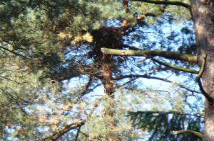 Een "Roestboom," waarin, goed zichtbaar, enkele uilen.
