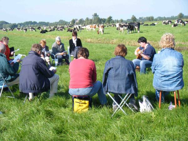 Het gaat er tijdens deze middagen om gezellig met elkaar (met en zonder zangervaring) te zingen. Voor alle deelnemers was het een zeer bijzondere ervaring te zingen in het land tussen de koeien. Zonder meer een geslaagd initiatief. Op 18 oktober zal de volgende themamiddag gehouden worden in Jill House op de markt te Oudewater.
