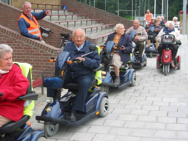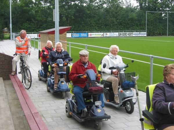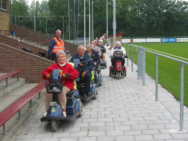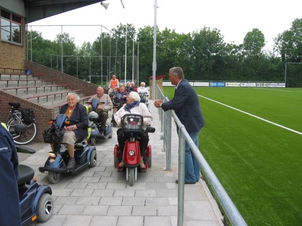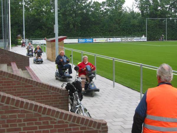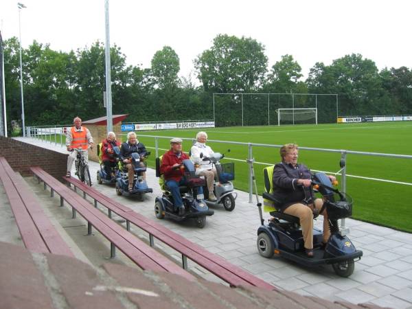 Woensdag 24 september hebben Piet de Jong en Albert Scheel met de scoot mobielers uit het Antoniushof een eerste inspectie gehouden op het allernieuwste hoofdveld van MSV'19 met kunstgras.