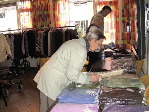 Geplaatst op:07-10-2008 Bijgewerkt op:07-10-2008 15:03 Kledingbeurs in de LindescoteBron: Foto's Nel van den BrinkMaandag 6 september werd er een kledingbeurs georganiseerd in de Lindescote in Linschoten.De zaal werd omgetoverd tot een kledingzaak met de nieuwste winterkleding.De bewoners gingen op hun gemak langs de rekken om een paar nieuwe setjes te kopen.