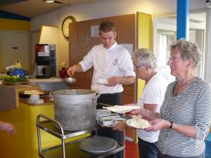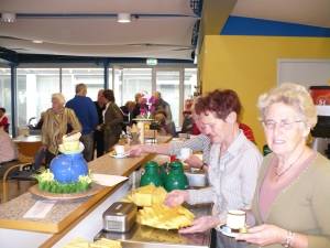 De vrijwilligers liepen zich weer de benen onder het lijf vandaan om de door vele sponsoren geschonken heerlijkheden uit te serveren.