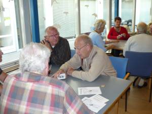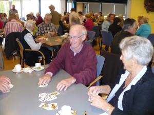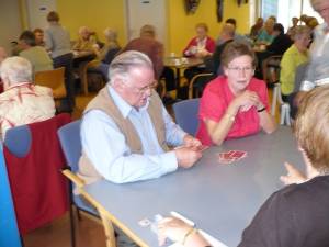 88 Kaarters uit Montfoort, IJsselstein en zelfs een paar invallers uit Oudewater deden10 oktober mee aan het jubileum kaarttoernooi (soosdag) van het Knooppunt  in Antoniushof.