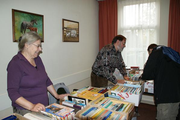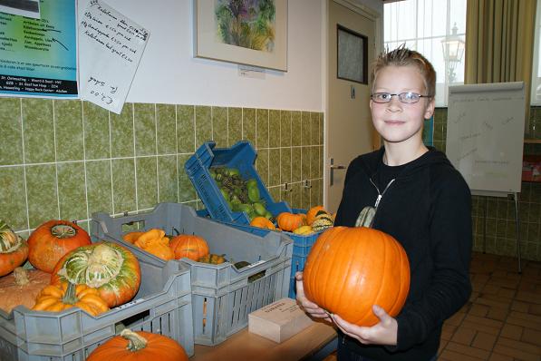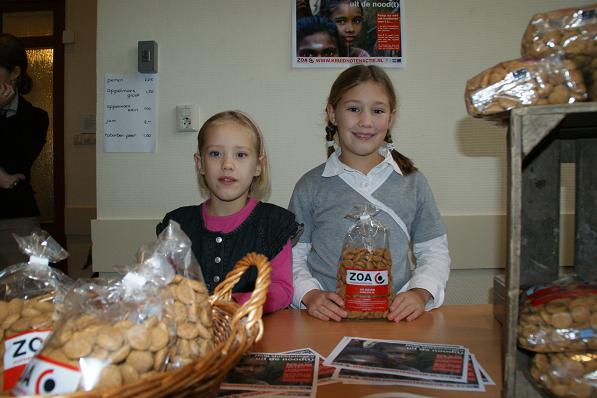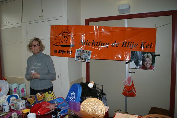 Geplaatst op:15-11-2008 Bijgewerkt op:15-11-2008 12:23 Goede Doelenmarkt in LinschotenBron: Saskia van den Brink, RSMZaterdag 15 november werd er in ‘De Wingerd’ een Goede Doelenmarkt georganiseerd. Hier kon men kennismaken met verschillende goede doelen waar de Linschotenaren zich voor inzetten, zoals Stichting de Blije Kei voor het kindertehuis in Kenia, ZOA-Vluchtelingenzorg, Stichting Ontmoeting en andere organisaties. Er werden sieraden, artikelen uit Kenia, cd’s, boeken, kaarten en bloemen verkocht. Maar ook kruidnoten, aardappelen, appelmoes, jam en pompoenen. Men kon ook plaatsnemen voor koffie met cake of een lekker gebakje. Lekker snuffelen tussen de tweedehands boeken. Familie Bloemheuvel druk bezig voor het kindertehuis in Kenia. Jonge verkopers van pompoenen en kruidnoten voor het goede doel.
