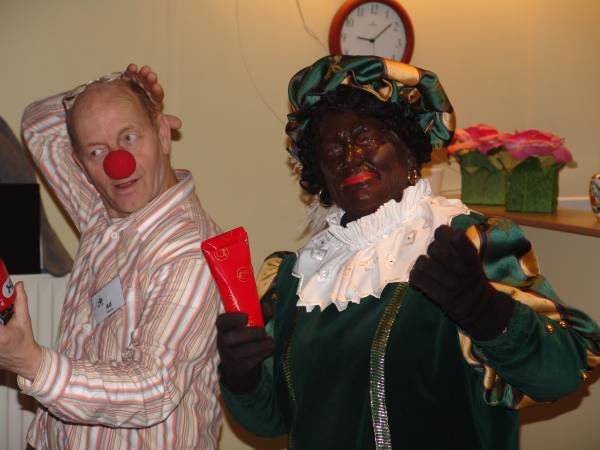 Het repertoire veranderde direct in sinterklaasliedjes. Zwarte Piet bleek ook nog te kunnen zingen, en voegde zich bij het koor. Na afloop verzocht hij om een kleine bijdrage voor de Clinic clowns, de specialisten van de lach. Er werden gulle gaven in zijn pet gestopt.