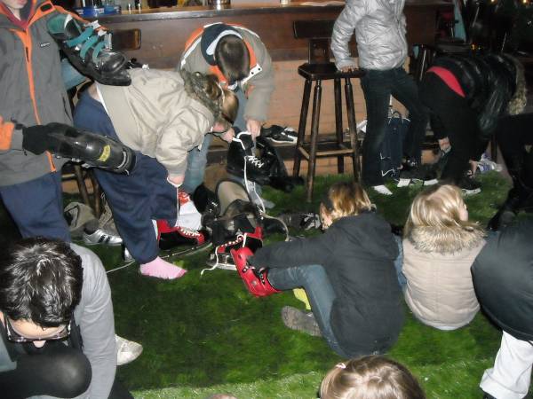 De kantine van de tennisvereniging is omgetoverd in een gezellige "Koek en zopie tent." Voor degene die geen schaatsen bezitten zijn er huurschaatsen voor één euro, waarbij gelijk de entree is betaald. Ook zijn er schaateen te koop.