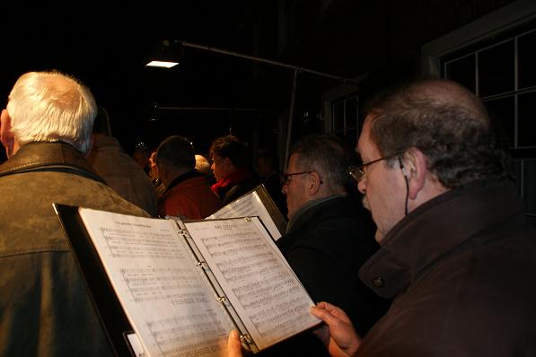 Geplaatst op:24-12-2008 Bijgewerkt op:24-12-2008 20:40 Kerstconcert mannenkoor ZanglustBron: Saskia van den Brink, RSMOp 24 december, kerstavond, werd in Linschoten het traditionele openlucht kerstconcert van mannenkoor Zanglust gegeven. Omstreeks 19.00 uur kwamen vele inwoners samen rondom de Dorpstraat om naar de prachtige liederen te luisteren. De kinderen die meekwamen kregen een kaarsje aangeboden.