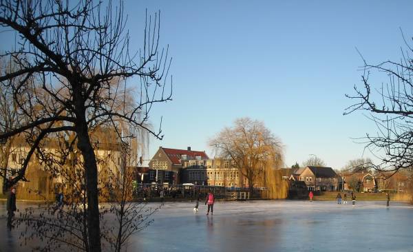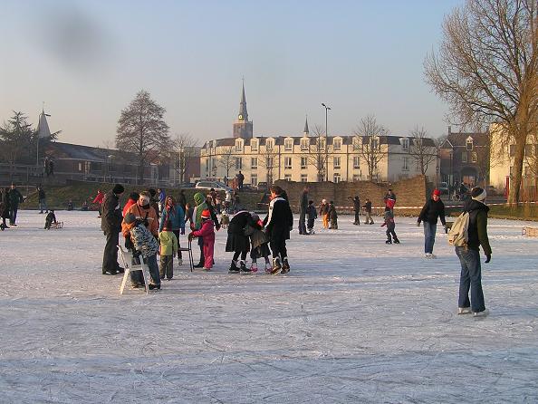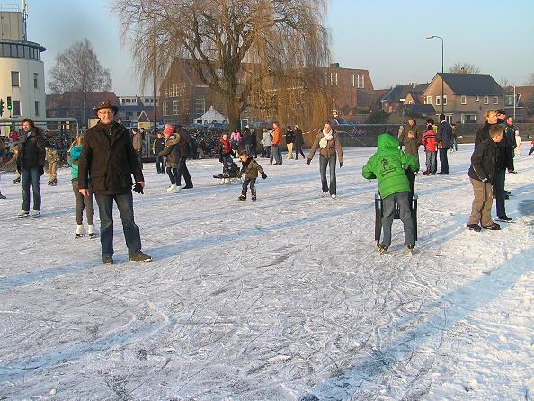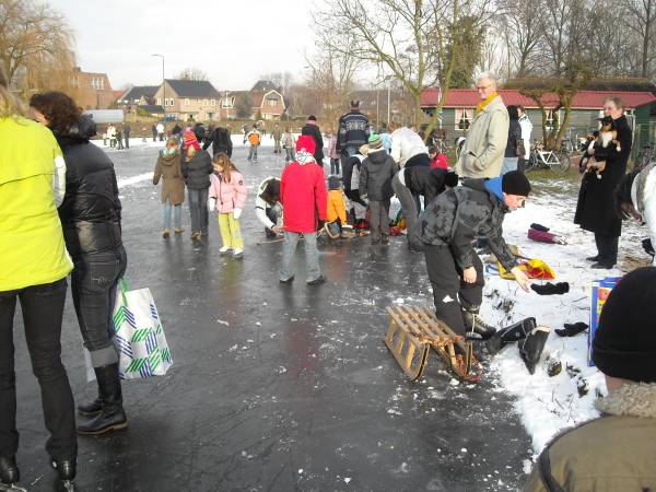 Geplaatst op:06-01-2009 Bijgewerkt op:15-01-2009 18:42 De vlag kan uit: de gracht is openBron: Nettie Kuijer, redactie RSMDinsdagmiddag zwierden de eerste Montfoorters over het ruime ijs van de Gracht. Het is mooi donker ijs, met alleen een zwakke plek onder de brug. De jubilerende Montfoortse IJsvereniging had het niet mooier kunnen dromen. Eerst wekenlang vertier op de kunstijsbaan die zij hadden aanleggen bij de tennisvereniging, en aansluitend strenge vorst. Ad Verschoor: “maandag is de tent afgebroken, en de kunstijsbaan dinsdag. We hebben alle spullen van de ijsvereniging zo door het park hier naartoe kunnen verhuizen, perfect!”