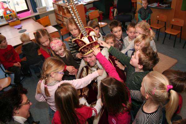 Donderdag 12 februari heeft Prins Berry le Tapageur een bezoek gebracht aan de onderbouw van de Heeswijkschool, Howiblo en Hobbitstee.