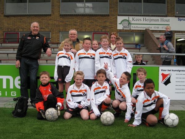 Geplaatst op:09-04-2009 Bijgewerkt op:09-04-2009 12:42 300e jeugdlid voor M.S.V.Bron: Jeugdcommissie v.v.M.S.V.'19Dat voetbal voor de jeugd een aantrekkelijk spelletje en een leuke teamsport is, blijkt wel uit het feit dat v.v.M.S.V.’19 afgelopen weekend zijn 300e jeugdlid heeft mogen verwelkomen. Niels de Rooy, spelend voor de E6, ontving uit handen van jeugdvoorzitter Gijsbert Klein een v.v. M.S.V.'19 trainingspak en een leren voetbal, beschikbaar gesteld door de Business to Businessclub van v.v. M.S.V.'19. Uit het grote aantal jeugdleden blijkt dat v.v. M.S.V.'19 een grote aantrekkingskracht heeft op de Montfoortse jeugd. Het beleid van de jeugdcommissie is er dan ook op gericht om naast de voetbalactiviteiten ook andere activiteiten te organiseren om op die manier het v.v. M.S.V.'19 gevoel te creëren en ervoor te zorgen dat jeugdleden lang aan de vereniging verbonden blijven.  | | Niels de Rooy, met zijn trotse teamgenoten |