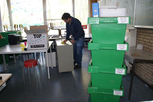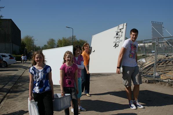 Maar ook leraren en leraressen die samen met enkele leerlingen lopend schoolspullen naar het nieuwe onderkomen brachten. Door de verhuizing zijn de leerlingen al vrij en worden na de meivakantie op donderdag 7 mei verwacht in het nieuwe onderkomen.