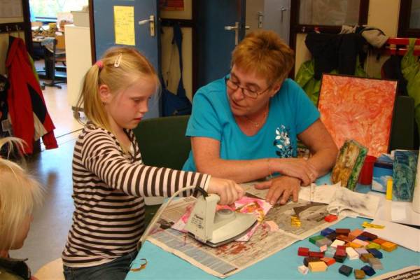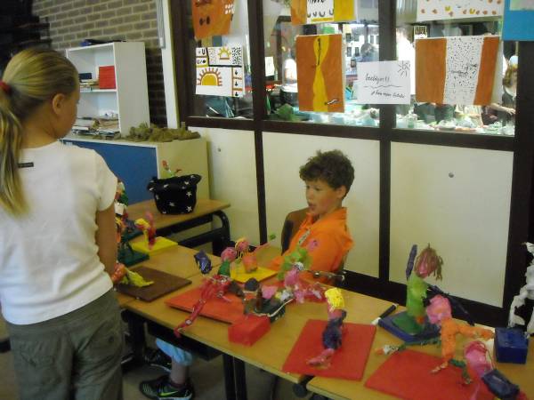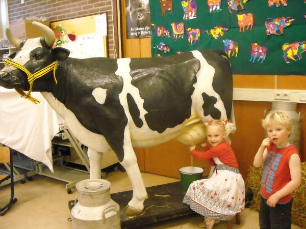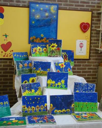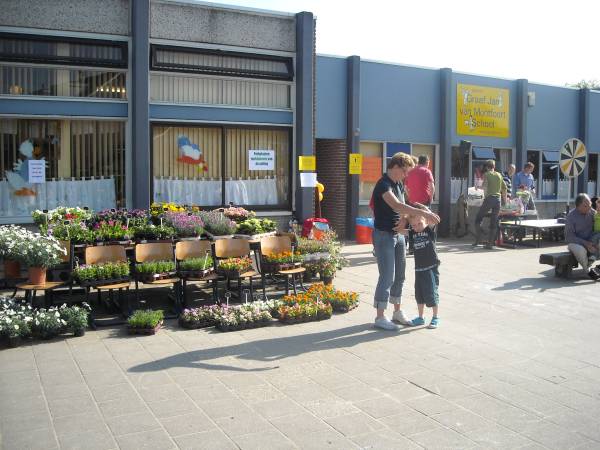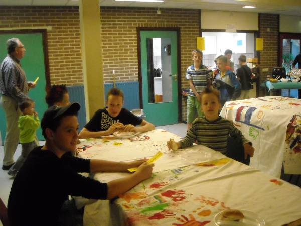 Geplaatst op:23-04-2009 Bijgewerkt op:24-04-2009 07:53 Kunst en Kidz op de Graaf JanBron: Cissy Jansen, Graaf JanschoolAfgelopen donderdag was het groot feest op de Graaf Jan van Montfoort School. De themaweek Kunst werd afgesloten met een groots opgezette Kunst & Kidz Markt. In diverse kramen konden de kinderen creatief bezig zijn met o.a. bijenwaskaarten maken, tassen bewerken met textielstiften of servetten laten borduren. Ook waren er allerlei moederdagcadeaus te koop en was er een plantenmarkt waar iedereen zijn lentebloeiers kon kopen.Alle klassen hadden ook leuke acties bedacht om geld in te zamelen. De ludiekste actie werd gewonnen door groep 4. Bij hun in de klas kon je met een levengrote koe op de foto. Vol trotst werd meester Marco naar voren gehaald met zijn klas om de beker in ontvangst te nemen. Na een ere rondje van Thijs is de beker op een prominente plek in de klas geplaatst. Bij het rad van fortuin konden de ouders en leerlingen hun geluk beproeven. Mede dankzij de Montfoortse middenstand, werden er drie rondes gedraaid waarbij veel mensen in de prijzen zijn gevallen. En dit was nog niet alles. Alle leerlingen hadden tijdens de themaweek allemaal een eigen kunstwerk gemaakt variërend van Van Gogh schilderijen tot mooie aardewerken. Deze kunstwerken stonden in de klassen ten toon gesteld en konden door de bezoekers worden gekocht. Wie wil er nou niet de mooie zonnebloemen van Van Gogh aan de muur. De opbrengst van de markt komt geheel ten goede aan de schoolmetamorfose. Samen met ouders zal de binnenkant van onze school een complete opfrisbeurt krijgen. Tijdens de Kunst & Kidz Markt zijn de plannen onthuld en op 9 mei aanstaande zal de eerste aanzet van de metamorfose worden gemaakt.