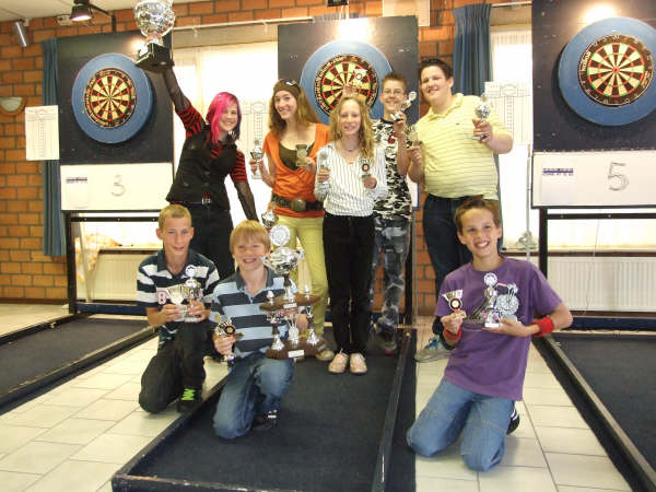 Twee dagen later was het de beurt aan de jeugd om hun finales te gooien. Bij de junioren was Patricia Vergeer niet te verslaan: tijdens de voorrondes versloeg ze de favoriet Joery Vergeer, en ze won haar andere partijen. Ze kwam in de finale terecht, waar ze het tegen Jan Vermeer moest opnemen. Jan begon heel sterk aan de wedstrijd, en stond al snel voor met 2-0. Toen Patricia eenmaal loskwam, won ze de laatste 3 legs. De aspiranten hadden 2 favorieten: Sven van Bommel en Jack Wilson. Jack wist in de voorronde eenvoudig overeind te blijven, terwijl Sven afhankelijk was van Adriana Verschoor die haar laatste partij verloor en daarmee 3de werd. Jack en Sven speelde een bloedstollende finale die uiteindelijk gewonnen werd door Jack Wilson met 3-2. Na deze finales werd het mini en maxi gespeeld. 15 koppels deden hier aan mee, en de grote wisselbeker ging naar Woudrichem: Sven en Pedro Drost wonnen de finale van Marc en Joery Vergeer. Buurtvereniging Willeskop kan weer terug kijken op een geslaagd seizoen. Het volgende seizoen begint in september. De winnaars bij de senioren. De winnaars bij de jeugd.