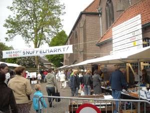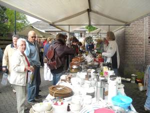De grote snuffelmarkt naast de RK Kerk in Montfoort biedt mooie artikelen,