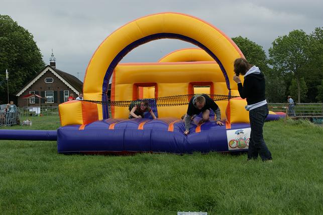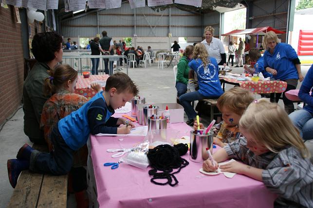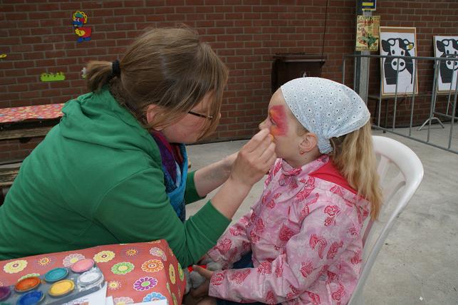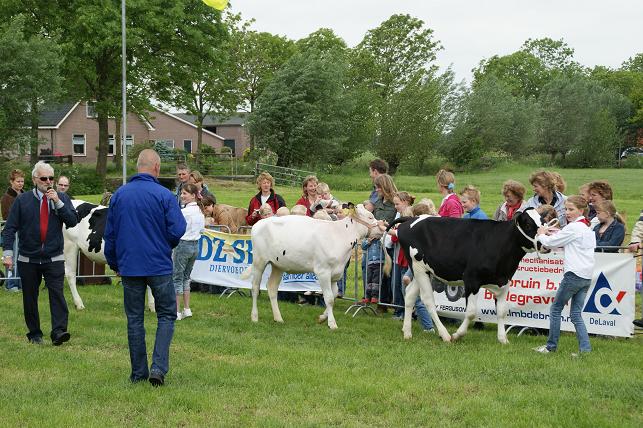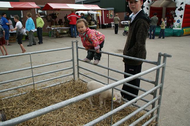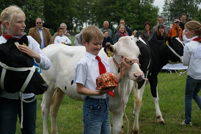 Jong en oud konden een kijkje nemen op de boerderij, de stallen bezichtigen en o.a. lammetjes aaien. 's Ochtends werden er kalfjes voorgebracht door kinderen. Er was een braderie en binnen waren er creatieve en kinderactiviteiten. Men kon ook deelnemen aan polsstokverspringen, trekkerbehendigheid, zeskamp en aan de prutrace. De avond werd afgesloten met een schuurfeest. Kalfjes voorbrengen. Dit was één van de trotse winnaars. De jeugd vermaakte zich met lammetjes kijken.... ....en met kleuren of schminken. Er waren kraampjes met decoratieve spulletjes, kaas, ijs, en meer lekkernijen. Iedereen mocht het polsstokverspringen uitproberen. Maar eerst even oefenen op het droge. Er was een onderdeel trekkerbehendigheid met spijkerpoepen, ringsteken en met de trekker deze brug in evenwicht houden. Verschillende teams namen deel aan de zeskamp. Met een ei in de hand over de stormbaan. En met z'n allen meedoen aan de bierkrattenrace. Lekker baggeren tijdens de prutrace.