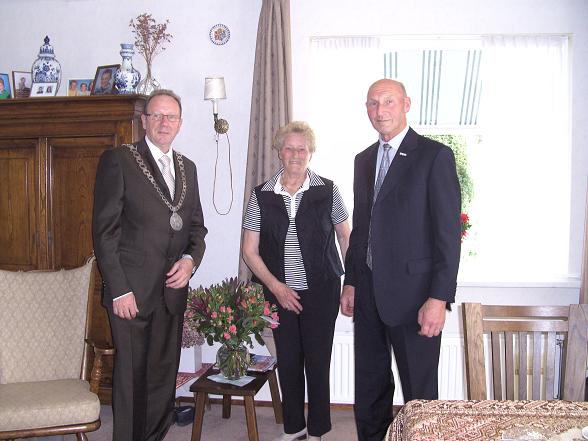 Burgemeester Jansen bezoekt het jubilerende echtpaar van Riet.