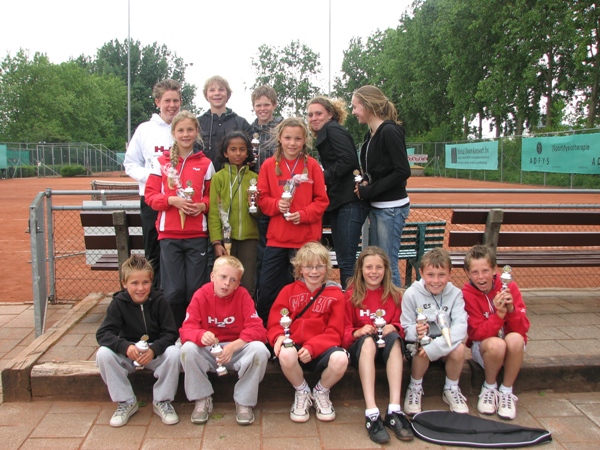 Geplaatst op:28-05-2009 Bijgewerkt op:28-05-2009 19:48 Jeugd TVM sluit competitie afAfgelopen week was het alweer de laatste ronde van het competitieseizoen van de jeugd 2009. Er werden 7 weken achter elkaar op woensdag, zaterdag en zondag door 18 jeugdteams, in de leeftijd van 10 t/m 17 jaar, leuke en spannende wedstrijden gespeeld.Het tennispark werd tijdens de competitie goed bezocht door enthousiaste ouders en toeschouwers. Het niveau van de jeugd is bij TVM de laatste jaren behoorlijk toegenomen, mede dankzij trainers Praveen, Jan en Maarten. De resultaten van deze competitie waren ook dit jaar weer buitengewoon goed, met 3 teams die kampioen werden. Het tennisseizoen zit er nog lang niet op, want er worden nog diverse toernooien in zowel Montfoort als in de regio gespeeld, waarvoor men zich kan opgeven.  | | De competitie is voorbij, maar het tennisseizoen nog niet! |