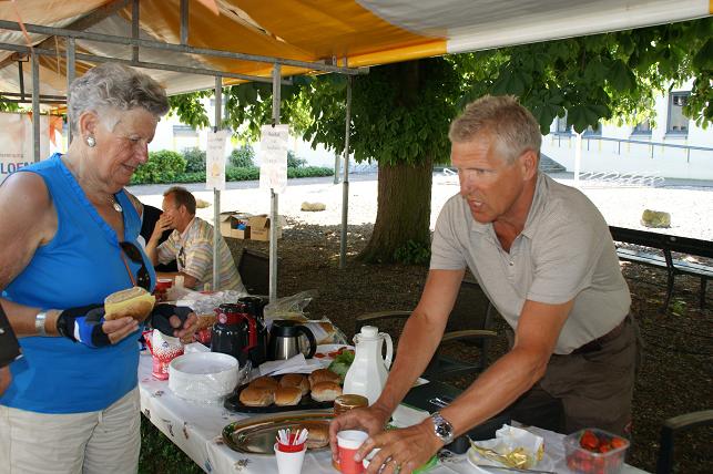 Even bijkomen met broodjes, fruit en lekker ijs.