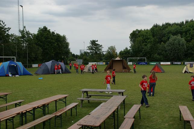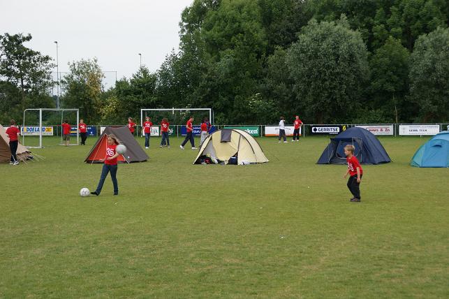 Ondertussen konden de kinderen een slaapplaats zoeken op het voetbalveld, daar was een tentenkamp opgericht. Er werd ook gelijk een balletje getrapt. Na de wedstrijd bleven zij een nacht kamperen en op zondagochtend zat het survivalweekend er weer op.