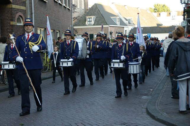 Defilé onder begeleiding van muziekverenigingen Ons Genoegen en Linfano.