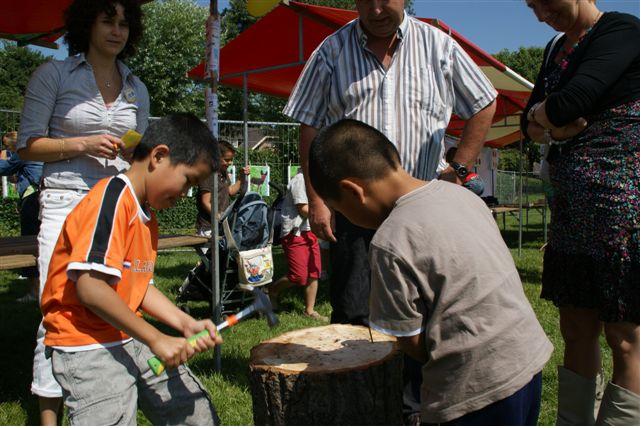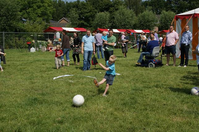 Er waren veel activiteiten, zenuwspiraal, optreden van een dansgroep in de tent, penalty schieten, skelter rijden, een auto slopen, en bij ezeltje prik en blikgooien werd de foto van de leerkrachten erop geplakt zodat de kinderen nog fanatieker meededen. Het beste voetballertje van Montfoort. Keeper verloor van deze jeugdige deelnemer. Lekker koekhappen. Zenuwen bedwingen met de zenuwspiraal. Ezeltje prik, prikken op het hoofd van de leerkrachten. Ad Vergeer zorgde voor gezellige muziek in de feesttent. Broertjes de Groot gaan de strijd met elkaar aan tijdens het spijkerslaan. De jeugd kan zich uitleven en een auto slopen. Competitie skelter rijden. Dansoptreden in de feesttent.