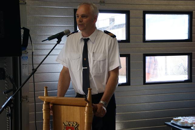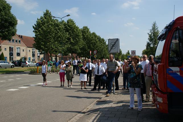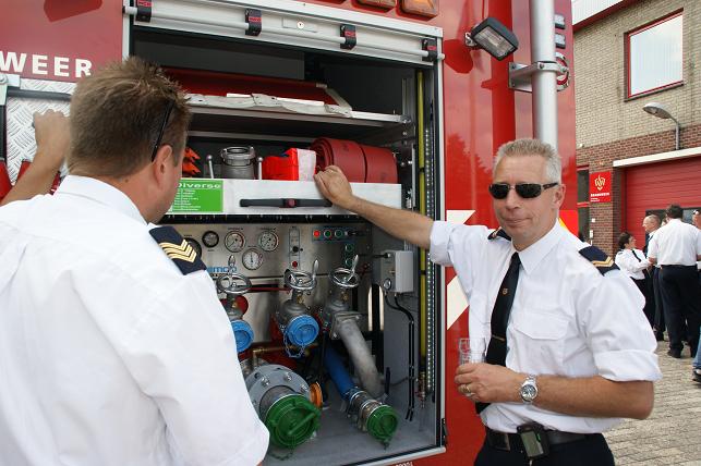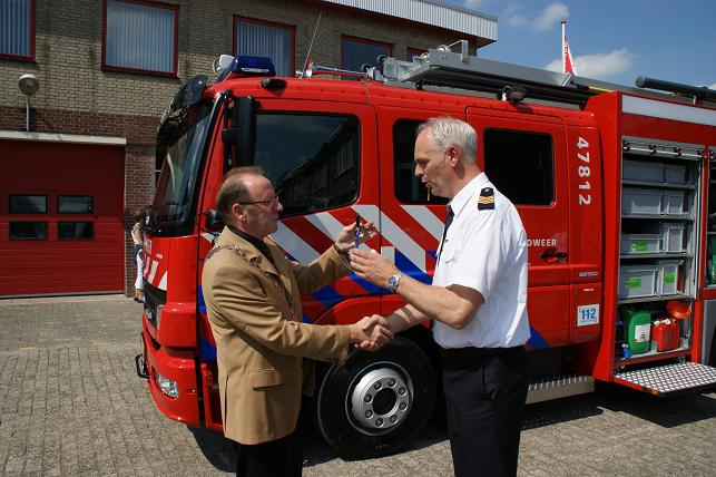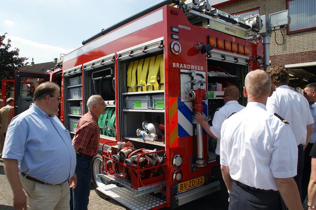 Na een voorwoord van o.a. postcommandant Ben de Goey en burgemeester Jansen in de kazerne werd iedereen verzocht naar buiten te gaan om de nieuwe wagen op te wachten. Deze werd feestelijk onthaald. Vanaf de rotonde waren de swingende klanken van de samba band Tropical Eleven al te horen, gevolgd door de nieuwe tankautospuit. Deze wagen (een automaat) heeft een grotere capaciteit en is ook voorzien van een extra luchthoorn, dat werd bij aankomst direct gedemonstreerd. Vervolgens overhandigde burgemeester Jansen de sleutel aan de brandweer. Daarna was er gelegenheid om de nieuwe wagen te bekijken. Tussendoor nog een knallend optreden. Linschotense collega's kwamen ook even kijken. Het werd een feestelijke middag.