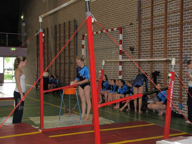 Daarna begonnen de onderlinge wedstrijden. De meisjes van de recreanten groepen en selectie turnden hun oefeningen op diverse niveaus.