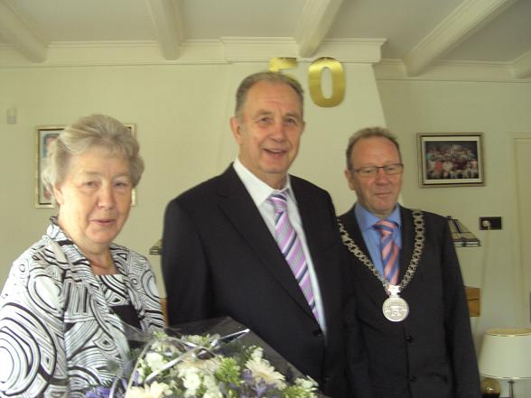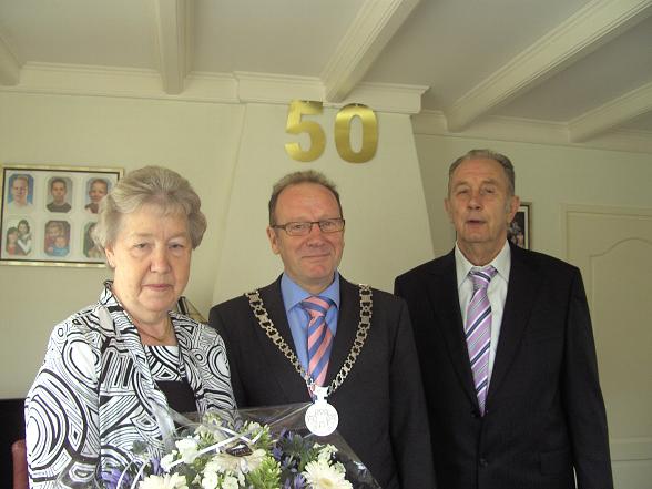 Deze dag vierden zij hun 50-jarig huwelijk. Zij hebben elkaar 53 jaar geleden leren kennen op de dansvloer in Vleuten. Op 10 juli 1959 trouwden zij voor de wet en op 22 juli vond het kerkelijk huwelijk plaats. Zij kregen 3 dochters en 2 zoons en hebben nu inmiddels 9 kleinkinderen. Burgemeester feliciteerde het jubilerende echtpaar.