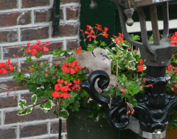 Deze duif maakte het nog mooier door in zo'n lantaarnpaal een nestje te bouwen. Inmiddels zijn er twee jonge duifjes uitgebroed en is het wachten tot ze uitvliegen.