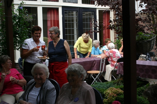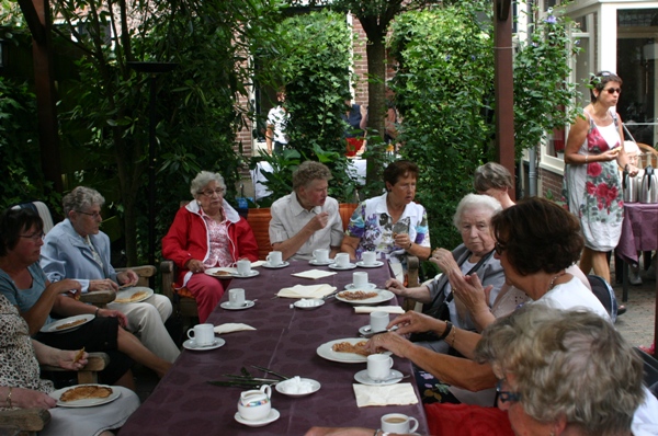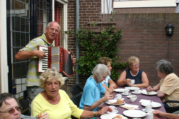 Prachtig weer, gezellige accordionmuziek waarbij met vrolijk meezong, gespeeld door Adri Vlooswijk, heerlijke wafels en een advocaatje toe maakten er een leuke middag van. Na afloop nam men zeer voldaan afscheid van de gastvrouw, die beloofde dat dit wat haar betreft een jaarlijkse traditie gaat worden.
