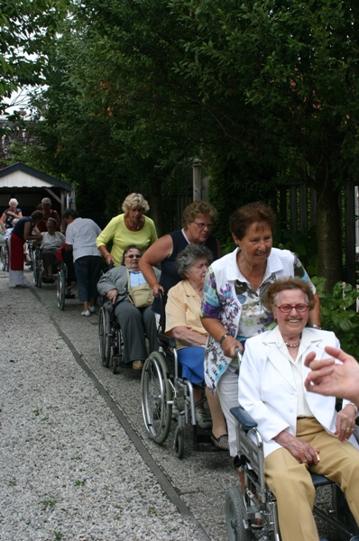 In de zomermaanden gaan de vrijwilligers van De Zonnebloem elke woensdagmiddag wandelen met ouderen in de rolstoel. En ook elke week zijn ze dan wel ergens in Montfoort of de onmiddelijke omgeving te gast. De laatste woensdag van augustus was de groep bij de regio-voorzitter van de Zonnebloem Ricky Vlooswijk.