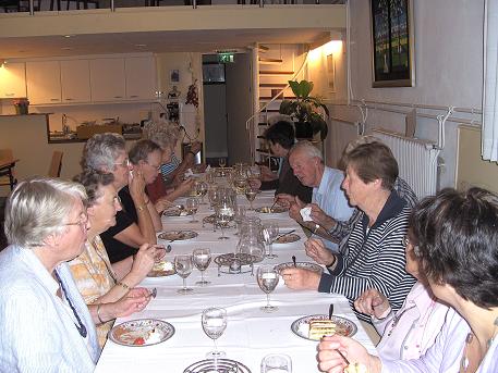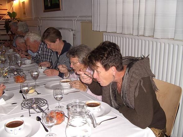 Op het menu stond een Italiaans driegangen diner, bestaande uit minestronesoep, spaghetti bolognese en het dessert was tiramisu, een specialiteit van de kok. Er werd volop genoten van al dit lekkers.