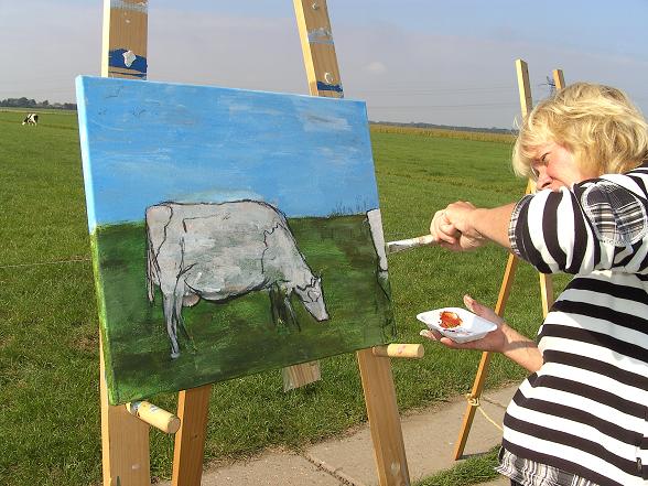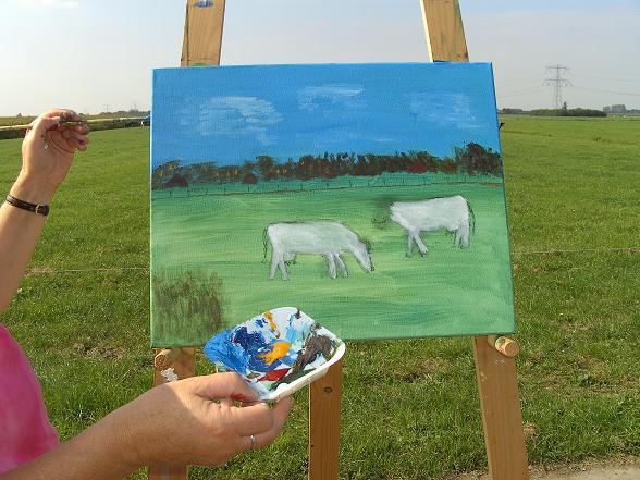 Niet alleen de koeien, maar ook het landschap is mooi om te schilderen.