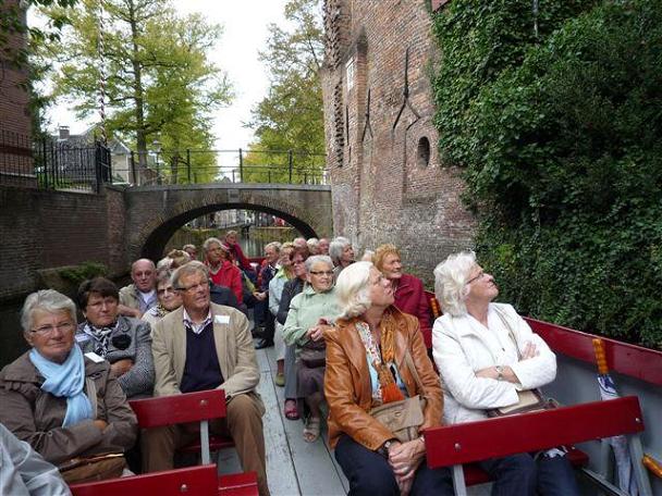 Na de lunch lag een rondvaartboot klaar voor een rondvaart door de singels van het feestelijke Amersfoort dat dit jaar gedenkt dat ze 750 jaar geleden de stadsrechten heeft ontvangen.