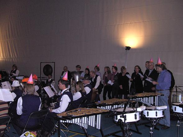Iedereen was feestelijk uitgedost voor het afscheidslied.