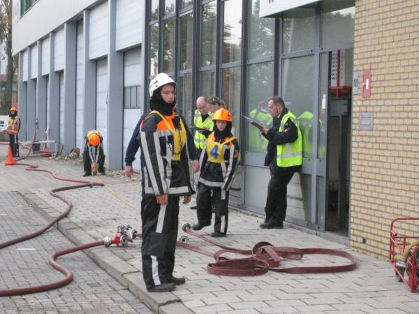 Geplaatst op:01-11-2009 Bijgewerkt op:02-11-2009 09:07 Wedstrijden jeugdbrandweerBron: Brandweer De Waarden - Post MontfoortZaterdag 31 oktober is in Utrecht de jaarlijkse slotwedstrijd van de Jeugdbrandweer Utrechts Land gehouden. Op de Lagedruk-baan hebben negen jeugdkorpsen gestreden voor de felbegeerde jeugdbrul-bokaal. Winnaar wer de ploeg uit Vinkeveen. Bij een transportbedrijf aan de Rutherfordweg op industrieterrein Lage Weide werd een binnenbrand gemeld. Direct werd een ploeg gealarmeerd, welke direct naar het brandadres uitrukte. Bij het betreden van het brandadres werd de nummers 1 en 2 en de bevelvoerder verrast door een gemaskerde man die een aansteker en een jerrycan brandstof bij zich had. Hij gaf aan dat hij het gebouw in brand wilde steken omdat hij ontslagen was. De stevig tegenstribbelende man werd door de ploegleden in bedwang gehouden totdat de politie hem overnam en afvoerde naar de politiecel. Ondertussen werd de eerste verkenning uitgevoerd, hierbij werd op de eerste verdieping in het ketelhuis een brandhaard ontdekt. Hierop ging 1 en 2 terug naar beneden om de eerste lagedruk-straal op te halen. Deze werd op de vuurhaard ingezet. Tegelijkertijd gingen de nummers 3 en 4 de eerste verdieping verder doorverkennen en troffen ze in een andere ruimte nog een brandhaard aan. Hierop werd de tweede straal ingezet. In deze ruimte bleek ook een vrouwelijke slachtoffer te zitten. Deze werd er direct door de nummers 1 en 2 naar buiten gebracht. Ook zij gaf tijdens het naar buiten gaan aan dat ze ook het gebouw in brand wilde steken omdat ook zij ontslagen was. Ze was erg boos op haar ex-werkgever en dat liet ze dan ook duidelijk blijken. Nadat dit slachtoffer naar buiten was gebracht en de branden uit waren gemaakt kon de ploeg weer inpakken en werd de wedstrijd beëindigd.