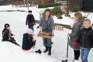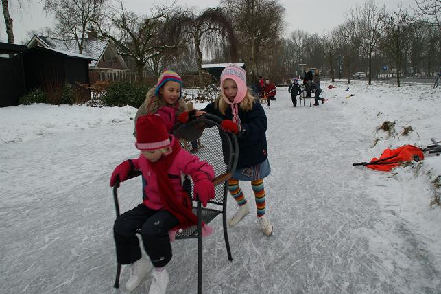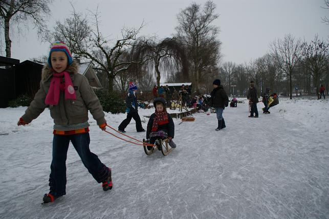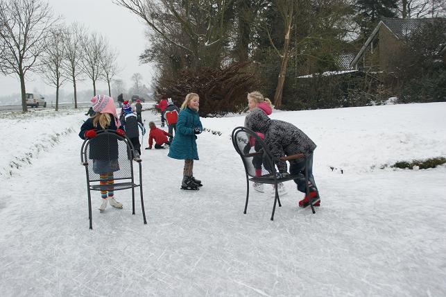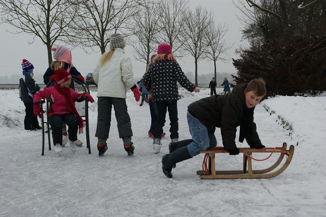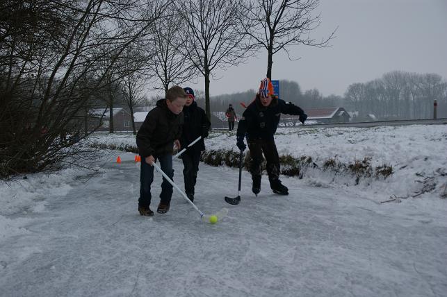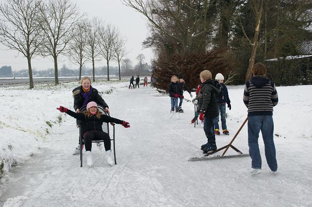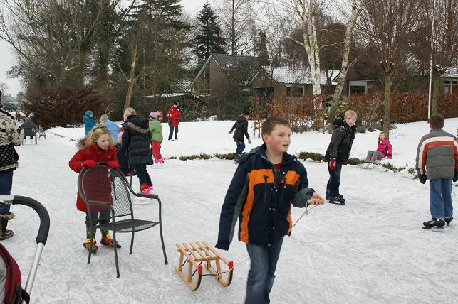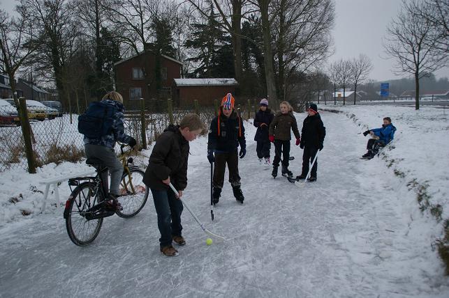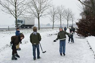 De kinderen leefden zich lekker uit met schaatsen, sleeën of ijshockey op de sloot bij de Meidoornlaan. Het was prima ijs, mede door enkele buurtbewoners die elke dag het ijs schoon schuiven. Na het schaatsen kregen zij warme chocolademelk en iets lekkers.