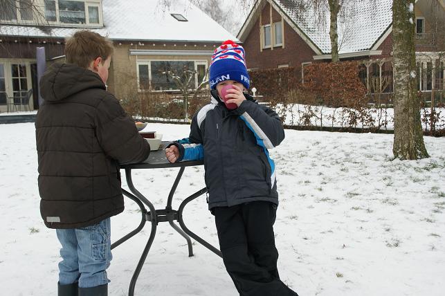 Even bijkomen en jezelf opwarmen aan de warme chocolademelk.