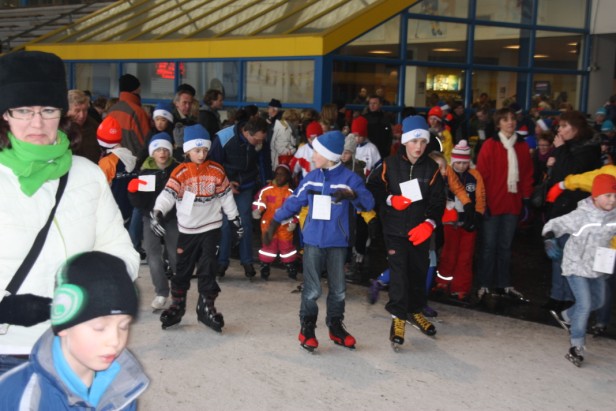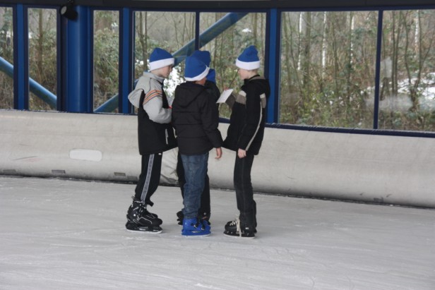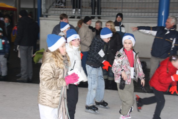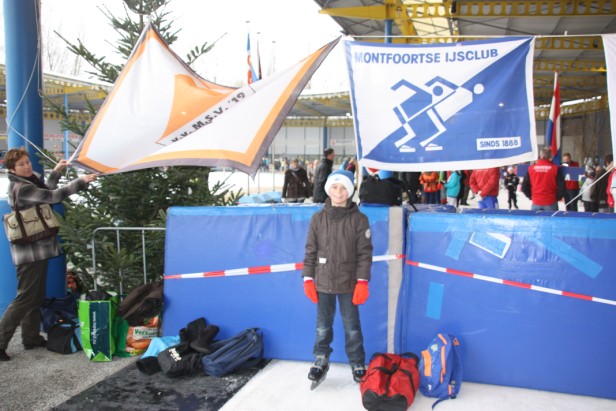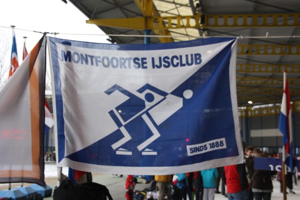 De Montfoortse schaatser waren goed te herkennen aan de echte blauw/witte Montfoortse IJsclub mutsen en namen snel bezit van de gehele baan.