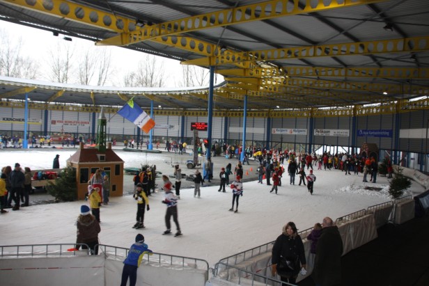 Op de schaatsbaan was een prachtig elfstedenparcours uitgezet. Helemaal compleet met stempelposten in alle elf steden, de brug van Bartlehiem, wakken, riet en kluunplaatsen.