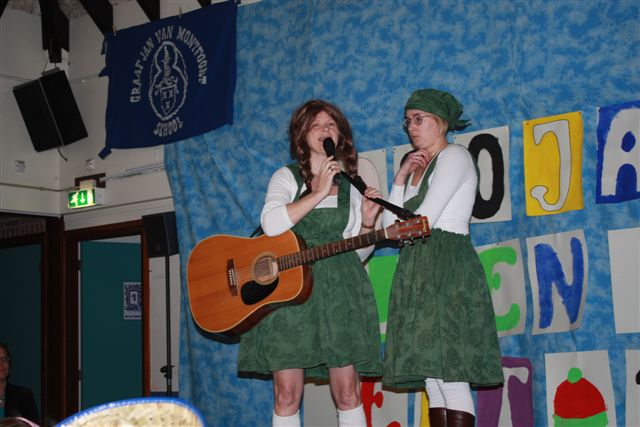 Geplaatst op:19-01-2010 Bijgewerkt op:19-01-2010 23:38 Graaf Jan feest in de Graaf Jan van MontfoortschoolBron: Marianne Looijenga-Roelse, ouderraad van Graaf Jan van MontfoortschoolMaandag 18 januari jl. was het Graaf Jan dag. Nee, niet de geboorte- of sterfdag van de Graaf Jan van Montfoort. Maar op 18 januari 1977 opende de Graaf Jan van Montfoortschool voor het eerst haar deuren. Elk jaar, nu voor de 33e keer, wordt dat herdacht door middel van een feestje. Dit jaar stond het feest in het teken van de Olympische winterspelen. Leerkrachten en leerlingen zagen er ineens heel sportief uit, in trainingspakken, sportschoenen, snowboots aan en skimutsen op. In de ochtend stond een talentenjacht op het programma. In de aanloop naar deze dag zijn er in de klassen al voorrondes gehouden. De groepjes die ‘door’ waren, hebben op het grote podium hun talenten laten zien, aangemoedigd en bewonderd door alle kinderen van de hele school. Lovend commentaar was er van de driekoppige jury, een echte beker was voor het meest opvallende optreden. Dat was het optreden van Lorrain, Isabel, Ilse, Jannigje, Nova, Menno en Floor uit groep 3 / 4. Zij deden het lied Mama sé van K3, een waar dansspektakel, ondersteund door live playback en schudkokers. Na de middagpauze was de school omgebouwd tot één groot speelterrein. In alle lokalen waren spelattributen opgesteld, zoals tafelijshockey, loopski’s, sneeuwpopgrabbelen, ijspegel vangen, enz. In groepjes trokken leerlingen van het ene naar het andere spel en genoten volop van alle uitdagingen. Dorstig geworden bracht je een bezoek aan de kraam met hapjes en drankjes, de après-ski, in de hal. Aan het eind van een geslaagde dag worden de ijspegels bij elkaar geveegd en op de Graaf Jan wordt het Olympisch vuur weer gedoofd, zodat het elders ter wereld binnenkort kan worden ontstoken.