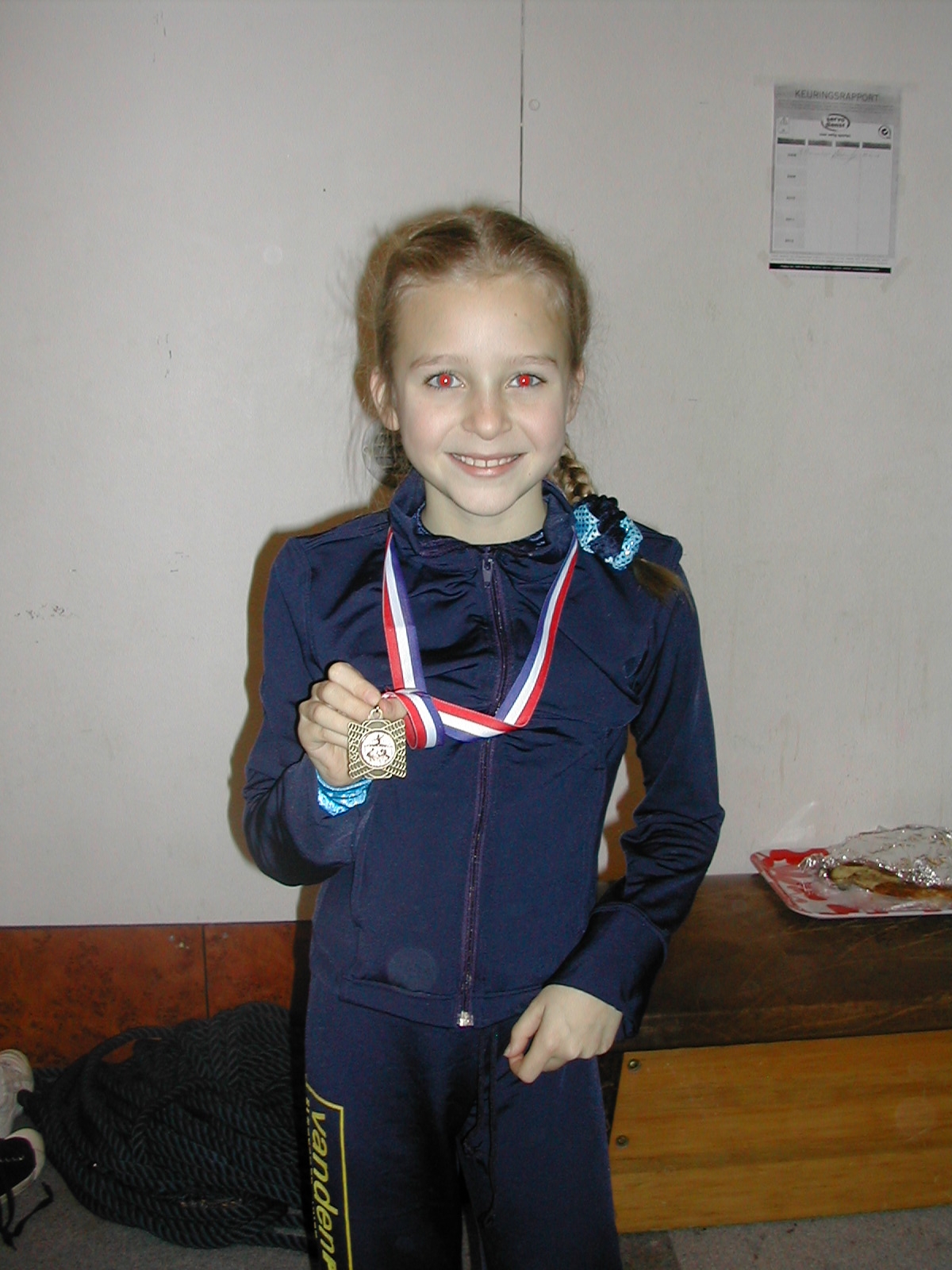 Geplaatst op:21-02-2010 Bijgewerkt op:21-02-2010 14:42 Weer 2 medailles voor ONI!Bron: Anchel KraanOp zaterdag 20 februari was de eerste regionale voorwedstrijd voor de turnsters in de vijfde en zesde divisie in Hooglanderveen. Met 7 turnsters ging ONI naar deze wedstrijd. De ONI turnsters waren ingedeeld in de tweede en derde ronde. In de tweede ronde mocht Myriam Smulders de spits afbijten. Zij kwam uit in de categorie pupil 1 NTS 10 en streed tegen 20 meisjes in haar categorie. Haar tweede toestel was de brug. Dit is haar favoriete toestel. Hier behaalde zij dan ook haar hoogste cijfer, een 13.500. Met een puntentotaal van 49.950 mocht zij met haar vierde plaats een mooie medaille mee naar huis nemen! In de derde ronde zaten, Romy de Bruijn, Danisha Kraan, Eva Sluijs en Juul Franke. Zij kwamen uit in de categorie Pupil 2 NTS 9. Voor hen waren er veel nieuwe elementen dit jaar. Het spannendste was wel de vloeroefening op muziek, die bij alle vier de meisjes goed ging! Juul Franke, die nog maar kort uit het gips is, heeft het goed gedaan. Zij eindigde in de middenmoot. Eva turnde goede oefeningen, maar liet wat puntjes liggen op balk. Zij behaalde de 13e plaats. Danisha turnde een hele strakke wedstrijd. Met het laatste onderdeel ging het echter mis. Zij maakte een misstap bij sprong, waarbij ze haar knie verdraaide. Hierdoor heeft ze geen sprong kunnen laten zien. Romy turnde ook een goede wedstrijd. Zij had met 13.750 punten op brug, de hoogste score in haar categorie. Met maar 0.650 punten verschil met de nummer 2, behaalde zij met een puntentotaal van 48.300 een mooie 3e plek! Marjolein Scholman en Ellen Snel kwamen in de derde ronde uit in Senior NTS 7. Marjolein Scholman turnde een hele strakke balkoefening. Hier haalde zij met 11.55 punten het hoogste cijfer in haar categorie. Ze eindigde met een puntentotaal van 40.650 als 8e. Ellen Snel turnde goede oefeningen op brug en vloer. Dit leverden haar een totaal van 40.350 punten op. Zij eindigde net achter Marjolein op de 10e plaats. Zaterdag 20 maart hebben zij een tweede kans om zich te plaatsen tijdens de tweede voorronde voor de regiofinale.