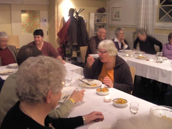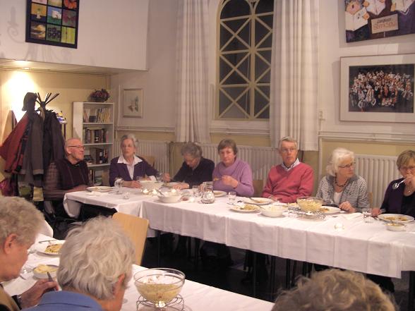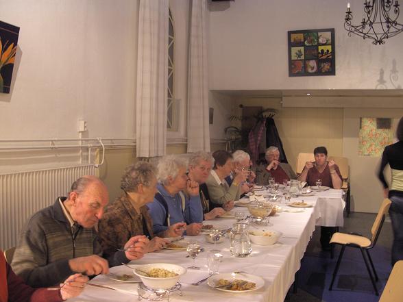 Het was gezellig druk, zo’n 28 mensen schoven aan en genoten van deze maaltijd.
