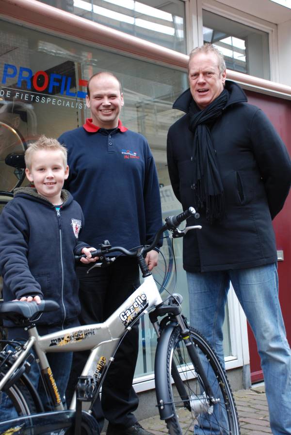 En afgelopen zaterdag kon Sem zijn prijs in ontvangst nemen. Een nieuwe fiets, mede mogelijk gemaakt door Profile fietsenspecialist Olaf Selderbeek en carnavalsvereniging Les Boutonniers.