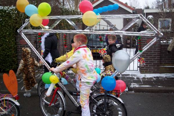 De fietsoptocht werd gehouden op Carnavalszondag. Dit jaar reden de versierde fietsen voor de Grote Optocht van CV Les Boutonniers uit. Sem fietste op een werkelijk fantastische zilveren fiets.