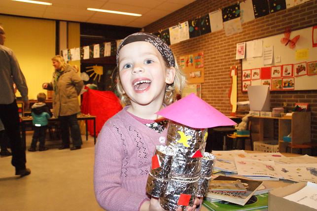 Hoogtepunt was de afsluiting donderdagavond. Ouders, familie en kennissen konden komen kijken naar wat de kinderen gemaakt hadden. En naast allerlei activiteiten was er ook een heuse speurtocht langs alle lokalen.