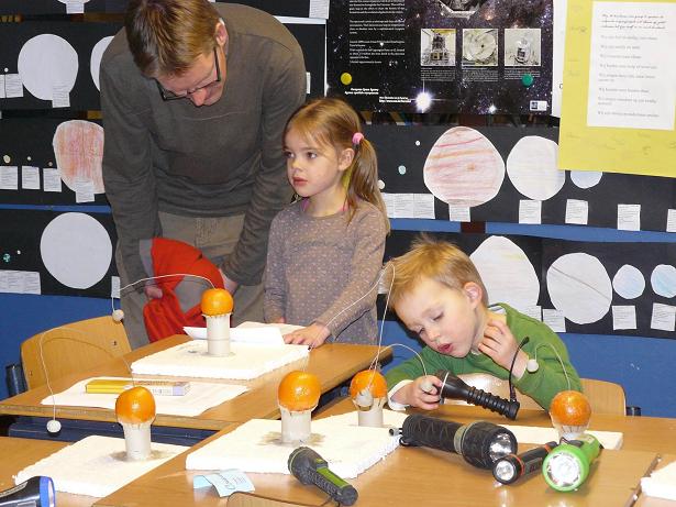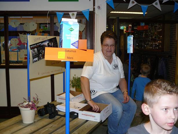 ....maar ook een zelfgemaakt ruimtestelsel. Eigenlijk stond ook sterrenkijken als activiteit gepland, maar door het weer (bewolkt) kon dit helaas niet doorgaan.